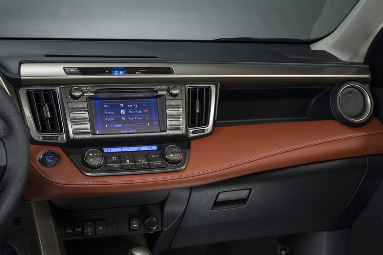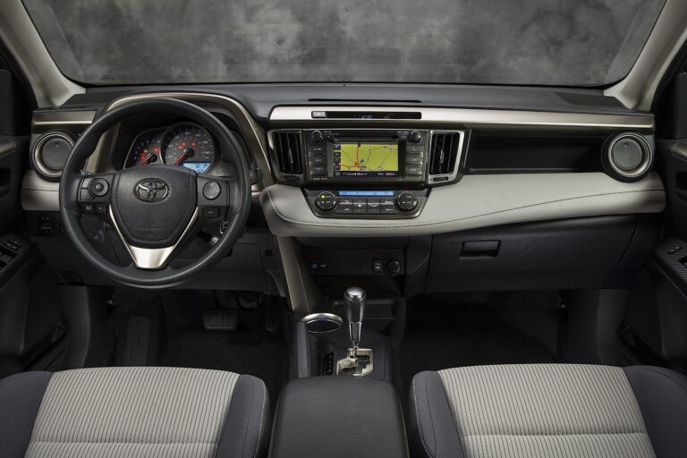 Dynamiczna, odważna architektura nowego kokpitu charakteryzuje się potężnymi górnymi i dolnymi poziomymi belkami, przerywanymi zakrzywioną metalową belką. Osadzona w tunelu przeniesienia, belka otacza nowy przyrząd kierowcy, kierownicę oraz przestrzeń na nogi, aby wzmocnić bardziej skoncentrowane na kierowcy cechy wnętrza nowej Toyoty RAV4.