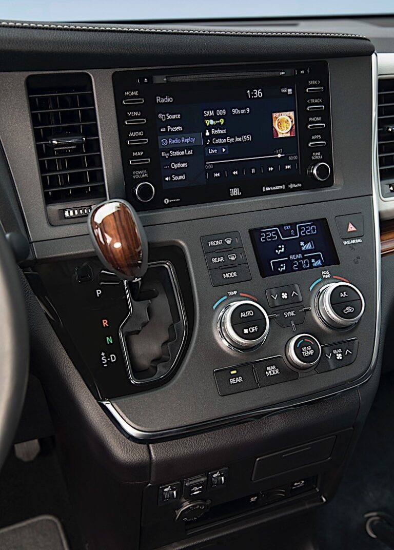 System Entune 3.0 będzie posiadał nawigację oraz pakiet aplikacji App Suite Connect dla wszystkich użytkowników. Modelom Sienna L, LE, SE i XLE będzie standardowo towarzyszyć podłączona nawigacja Scout GPS Link z dynamicznymi mapami. Modelom Sienna LE, SE i XLE będzie standardowo oferowany system Entune Audio Plus, który zawiera Safety Connect oraz Wi-Fi Connect. Wi-Fi Connect pozwoli na podłączenie do pięciu urządzeń mobilnych korzystających z 4G LTE.