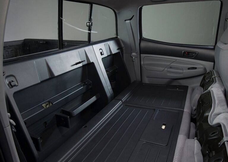 Wnętrze Toyota Tacoma zapewnia trwałość i komfort dzięki materiałom wysokiej jakości oraz bogatemu wyposażeniu standardowemu. Materiał tłumiący dźwięk w podsufitce i za tylnymi siedzeniami, a także izolujący dywan, pomagają w zapewnieniu cichej kabiny. Wszystkie modele Tacoma mają podwójne uchwyty na butelki w drzwiach po stronie kierowcy i pasażera. Kontrola audio jest umieszczona wysoko dla łatwego dostępu.