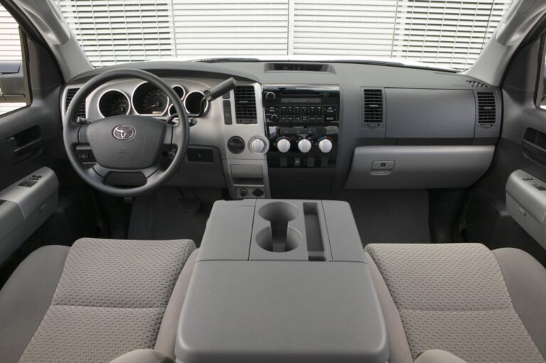 Wnętrze Tundry oferowało dwumiejscowe siedzenie lub ławkę dla trzech osób, w zależności od wybranych opcji i poziomów wyposażenia. W układzie z trzema miejscami, środkowa sekcja mogła zostać złożona, zamieniając środkową część oparcia w stół z dwoma uchwytami na kubki. Deska rozdzielcza miała design przypominający SUV-a, podzielony na dwie strefy: dla kierowcy i pasażera, wyraźnie różniące się kolorami. Ponadto, Tundra miała pięć zestawów wskaźników dla każdego z diali i wskaźników.