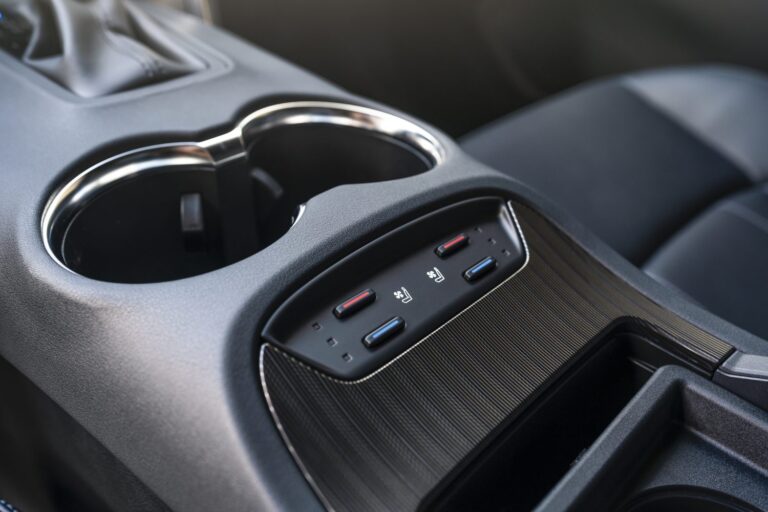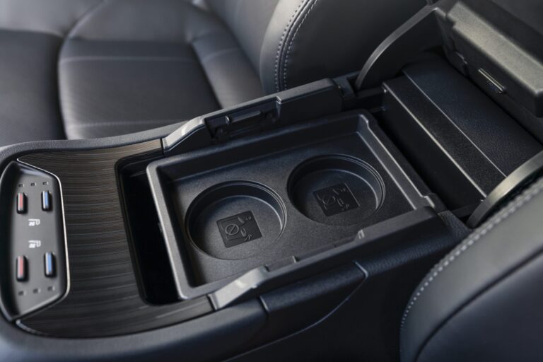 Toyota Venza nie zajmuje dużo miejsca na zewnątrz, ale zapewnia przestronną kabinę wewnątrz. Uchwyt na kubki pomieści duże napoje, podczas gdy tacka centralna zmieści największe modele iPhone’a. Uchwyt na butelki w drzwiach pomieści butelki o pojemności 24 oz.