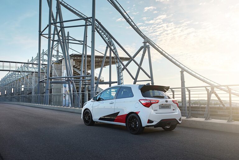 Yaris GRMN czerpie inspirację i wpływy z Yaris WRC, samochodu, dzięki któremu Toyota powróciła do Mistrzostw Świata w Rajdach FIA, odnosząc sukcesy w zawodach. Jego sportowy charakter podkreślają lekkie 17-calowe felgi BBS, większe hamulce, centralny owalny wydech oraz unikalne wykończenie na zewnątrz w kolorach białym, czarnym i czerwonym, reprezentujących zespół Toyota Gazoo Racing. Pod maską kryje się silnik o pojemności 1,8 litra, dostrojony do osiągania 212 KM DIN i korzystający z kompresora, co jest cechą unikalną wśród sportowych hatchbacków segmentu B.