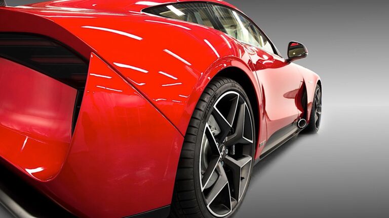Wracając do samego auta. Model Griffith z 2020 roku charakteryzował się nowoczesnym, śmiałym designem z LED-owymi reflektorami i rzeźbionym przodem. Szeroki grill został umieszczony niżej, z dwoma bocznymi wlotami powietrza, które poprawiały aerodynamikę. Łukowaty dach prowadził do krótkiej kabiny dla dwóch osób z dużą półką na bagaż z tyłu. Z boku, za przednimi błotnikami, samochód koncepcyjny miał wydechy po obu stronach. Najprawdopodobniej zostaną one przeniesione z tyłu, pod dużym dyfuzorem, ponieważ przepisy bezpieczeństwa zabraniają bocznych wydechów.