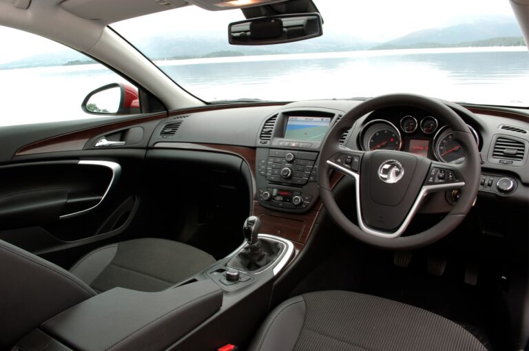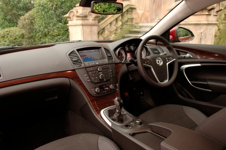 GM zaprojektowało zupełnie nowe wnętrze dla Insignii. Zainstalowano w nim grubsze fotele kubełkowe z miększym wsparciem dla pasażerów niż w Vectrze. Dłuższy rozstaw osi pozwolił zwiększyć przestrzeń na nogi pasażerów z tyłu o 3 cm (1,2″). Nowa generacja systemu infotaiment obejmowała siedmiocalowy kolorowy monitor z widokiem mapy 3D, cyfrowym przewodnikiem turystycznym oraz udoskonalonymi funkcjami przewijania i powiększania. Dzięki systemowi z dzieloną kanapą właściciel mógł zwiększyć pojemność bagażnika z 530 litrów (18,7 cu-ft) do 1 430 litrów (50,1 cu-ft).
