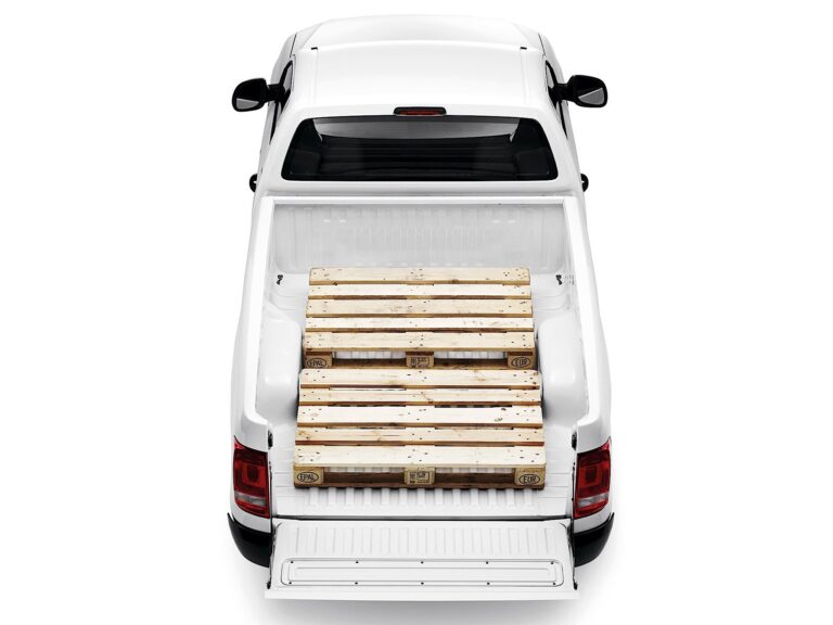 Ważne: Skrzynia ładunkowa Volkswagena Amarok Double Cab również ma największe wymiary w swojej klasie. Ma długość 1555 mm i szerokość 1620 mm, co daje imponującą powierzchnię skrzyni ładunkowej wynoszącą 2,52 metra kwadratowego. I to nie wszystko. „Najlepszy w klasie” jest również maksymalna szerokość ładunku wynosząca 1222 mm między nadkolami. Po raz pierwszy w segmencie średniej wielkości pickupów możliwe jest ładowanie palet euro (1,2 x 0,8 m) w poziomie, co oszczędza miejsce. Dzięki dużym wymiarom, wysokości progu ładunkowego wynoszącej 780 mm oraz nośności do 1,15 tony, można z łatwością transportować sprzęt sportowy, taki jak quady, oraz dużą maszynerię. Cztery uchwyty do mocowania w rogach skrzyni ładunkowej chronią ładunek podczas transportu. Przy holowaniu przyczepy pickup może obsłużyć ładunek przyczepy do 2,8 tony.