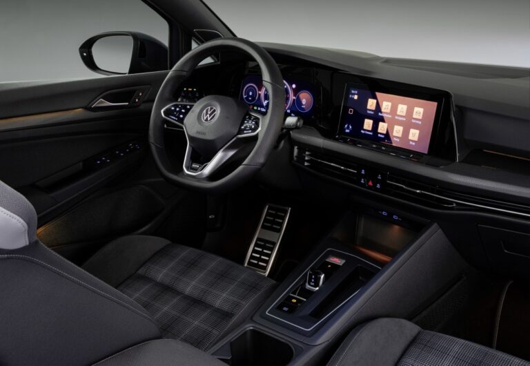 Choć Volkswagen poprawia cyfrowe i sieciowe możliwości ósmej generacji Golfa – a tym samym GTI, GTE i GTD – w niespotykanym dotąd stopniu, aby przyszłościowo zabezpieczyć ofertę, wiele z oryginalnych insygniów wciąż można znaleźć na pokładzie. Jednak sportowa kierownica z przeszłości została przekształcona w nową, wielofunkcyjną skórzaną kierownicę sportową z dotykowymi przyciskami i opcjonalnym przyciskiem Travel Assist, aby pomóc potężnym modelom Golfa osiągnąć maksymalną prędkość 210 km/h podczas aktywacji Travel Assist. Trzy srebrne ramiona pozostały – w GTI wnętrze centralnego ramienia ma czerwone wykończenie, podczas gdy GTE i GTD mają niebieskie i srebrne wykończenia odpowiednio. Klasyczny wzór w kratę sportowych siedzeń również pozostał. Nowy wzór kraty nosi nazwę Scalepaper. Szwy szaro-czarnego designu są czerwone w GTI, niebieskie w GTE i jasnoszare w GTD. Czerwony, niebieski lub czarny są również używane dla wszystkich dekoracyjnych szwów i obramowań, w zależności od modelu.