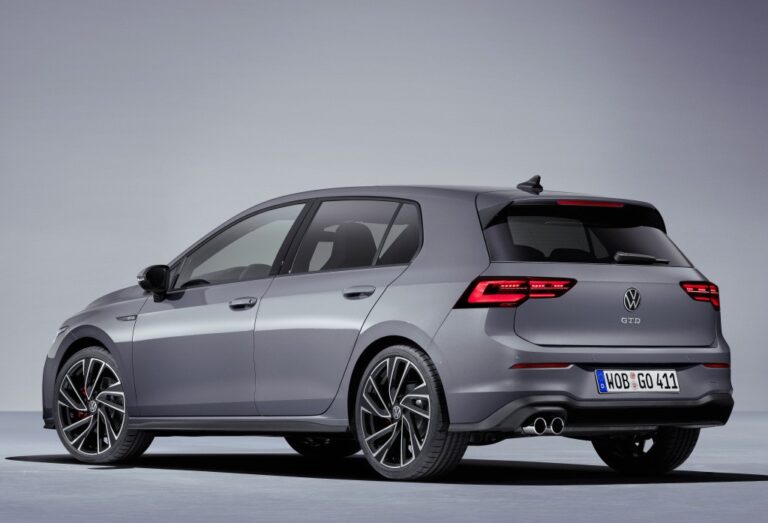 Golf GTD z 2020 roku został wyposażony w liczne funkcje, które wyróżniają go spośród innych wersji Golfa. Pełne reflektory LED są standardem, a srebrna linia biegnie wzdłuż górnej części maski. Aby wiedzieć, kto właśnie Cię wyprzedził, GTD ma podwójny wydech z lewej strony pojazdu. GTI ma po jednym na każdej stronie, a GTE nie ma żadnych widocznych rur wydechowych. Na dachu z tyłu pojazdu znajduje się dłuższy spojler, który obniża linię dachu, dzięki czemu samochód wygląda na niższy niż reszta gamy Golfów.