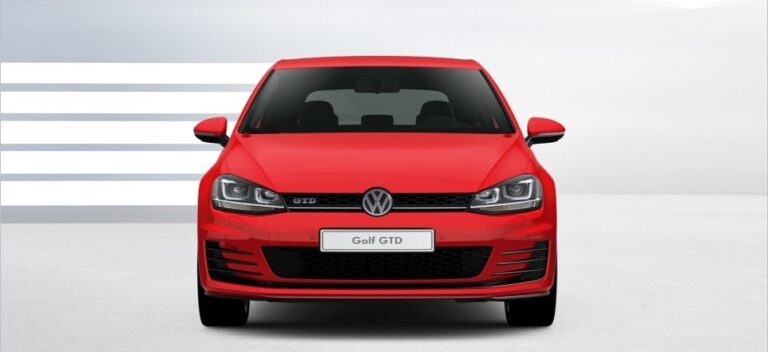 Podobnie jak nowy Golf GTI, Golf GTD opuszcza fabrykę w Wolfsburgu z reflektorami bi-xenonowymi, w tym światłami skrętnymi w standardzie. Podczas gdy przednia część Golfa GTI ma lakierowaną na czerwono listwę, GTD lśni elegancką, dyskretną listwą w chromie. Ta chromowana listwa rozciąga się w reflektorach i dzieli przednią część na górną część z LED-owymi światłami do jazdy dziennej i elementami bi-xenonowymi oraz dolną część z kierunkowskazami. Pod nią znajduje się zderzak zaprojektowany specjalnie dla modeli GT z (opcjonalnymi) LED-owymi światłami przeciwmgielnymi zintegrowanymi po obu stronach oraz elementami prowadzącymi powietrze pomalowanymi na czarno i dolną wkładką kraty chłodnicy o strukturze plastra miodu.