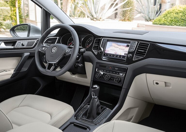 Projektanci wnętrza Volkswagena Golfa Sportsvan stworzyli wnętrze, które jest zarówno wysokiej jakości, jak i stylistycznie wyrafinowane, a jednocześnie czyste i świeże. Dominującym elementem jest nowo zaprojektowana deska rozdzielcza. Kierowcy obecnego Golfa lub Golfa Estate znajdą znane wskaźniki, centralny wyświetlacz dotykowy konsoli centralnej oraz sterowanie. Jednak projekt deski rozdzielczej, w której wszystkie te elementy są osadzone, został zaprojektowany na nowo do ostatniego milimetra. To samo dotyczy paneli wykończeniowych drzwi z zintegrowanym oświetleniem ambientowym (standard w wersji „Highline”, opcjonalnie w „Comfortline”).