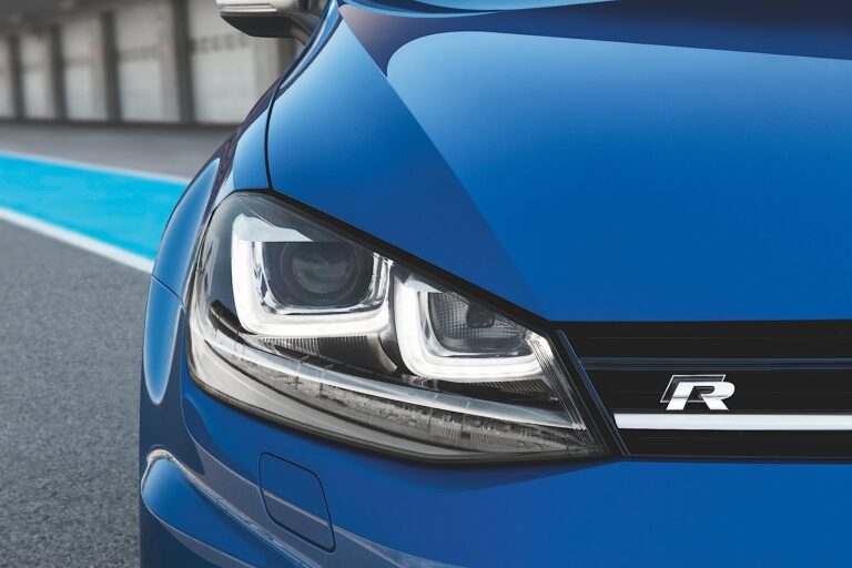 Golf R można wyróżnić z przodu nowym projektem zderzaka z wyjątkowo dużymi wlotami powietrza, zmodyfikowaną kratką chłodnicy (z logo „R”) oraz nowo opracowanymi światłami do jazdy dziennej, które są zintegrowane z obudowami reflektorów bi-ksenonowych. Diodowe światła do jazdy dziennej tworzą charakterystyczny podwójny wzór „U” poniżej podwójnych reflektorów.