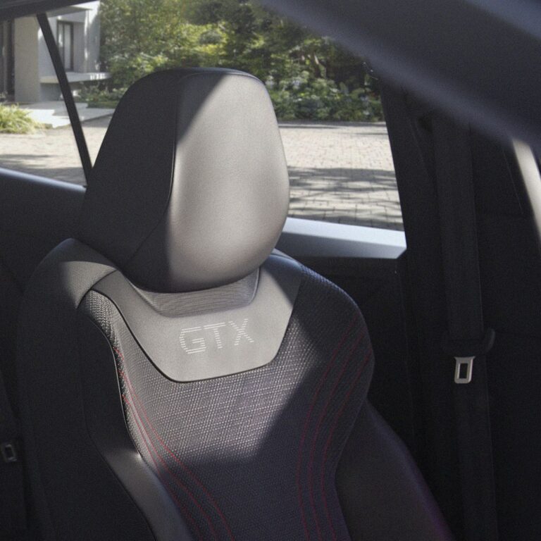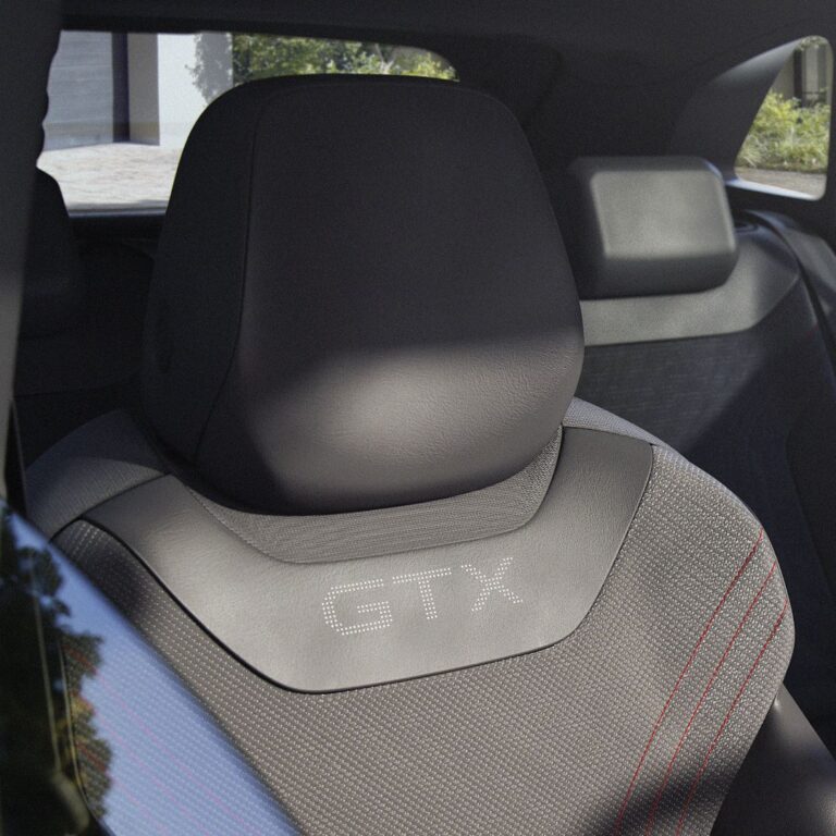 Kolor nadwozia jest bardziej dominujący niż w modelach z napędem na tylne koła. Dach i tylni spojler są czarne, podczas gdy belka ramy dachu ma wysoki połysk w kolorze antracytowym. Wnętrze również zachwyca nową kolorystyką. Górna część deski rozdzielczej oraz wstawki z materiału skórzanego w drzwiach są w ciemny odcień X-Blue, symbolizujący zrównoważony rozwój. Czerwone kontrastowe szwy – klasyczny symbol sportowości i siły – dodają akcentów siedzeniom. Logo GTX pojawia się na kierownicy, listwach progowych oraz – w perforowanej formie – na górze oparć przednich siedzeń.