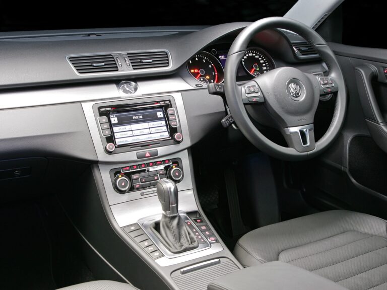 Wnętrze / funkcjonalność: W środku szczegóły, takie jak dekoracyjne wstawki w „Brushed Aluminium” (lub prawdziwym drewnie), „Premium” wielofunkcyjny wyświetlacz z wielokolorowym wyświetlaczem, stalowe płyty progowe z napisem „Passat”, elektryczna regulacja lędźwiowa i oparcia fotela kierowcy, fotele z Alcantary/skóry z ogrzewaniem z przodu oraz automatyczna klimatyzacja (Climatronic) doskonalą atmosferę i komfort samochodu.