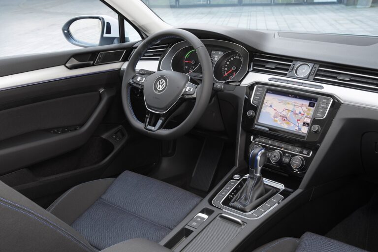 Wnętrze również zostało dostosowane do nowego systemu napędu. Z menu funkcji i wyświetlaczy związanych z napędem, inżynierowie i projektanci interfejsów w Volkswagen TE (Centrum Rozwoju Technicznego) dostosowali takie elementy, jak standardowy system infotainment „Composition Media” oraz zestaw wskaźników (z miernikiem mocy) do napędu hybrydowego. Dodatkowo, innowacyjny aktywny wyświetlacz informacji z określonymi wyświetlaczami będzie również dostępny jako opcja dla Passata GTE. Standardowe detale, takie jak niebieskie podświetlenie wnętrza, skórzana wielofunkcyjna kierownica z niebieskimi przeszyciami, dźwignia zmiany biegów specyficzna dla GTE z niebieskim przeszyciem oraz fotele pokryte materiałem „Sevilla” o niebieskiej strukturze, również zostały specjalnie skonfigurowane dla Passata GTE. Ponadto, wnętrze wzbogacono o design „Waves” (wygląd aluminium) i „Piano Black” (wysoki połysk czarny) oraz logo GTE przed szybą zmiany biegów.