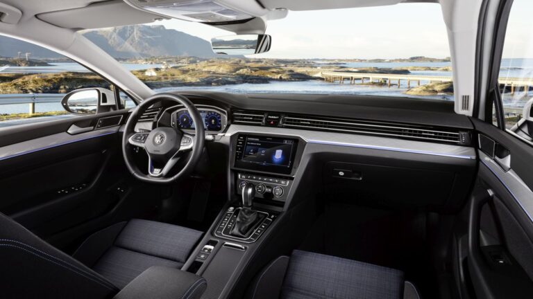 Passat wyróżnia się wewnątrz nowymi wykończeniami i tkaninami, przeprojektowanymi panelami drzwi, nowym kolorem wykończenia, nowymi instrumentami oraz nową kierownicą. Na desce rozdzielczej znajduje się stylowe podświetlane logo Passata zamiast analogowego zegara. Konsola centralna ma dużą, otwartą komorę na przechowywanie z opcjonalnym interfejsem indukcyjnym dla smartfonów i przyległym połączeniem USB-C. Ekrany Cyfrowego Kokpitu i systemów Infotainment łączą się w nocy z podświetlanymi przyciskami na pojemnościowej kierownicy wielofunkcyjnej oraz podświetleniem – teraz dostępnym opcjonalnie w 30 kolorach – tworząc dobrze oświetloną, estetyczną i funkcjonalną platformę do dostarczania informacji.