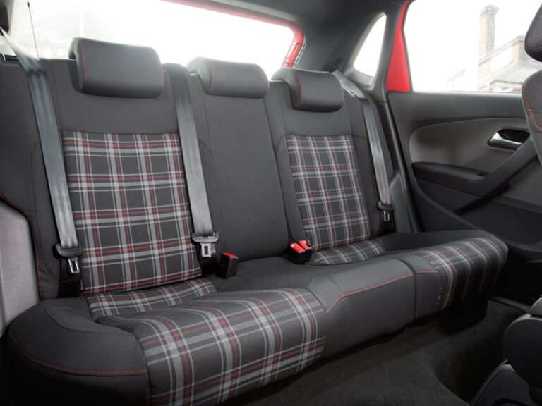 GTI czerwony akcentuje sportowy design wnętrza. Skórzana kierownica sportowa, dostosowana z Golfa GTI, ma kontrastowe czerwone przeszycia, podobnie jak dźwignia biegów i dźwignia hamulca ręcznego; dywaniki podłogowe również mają obrzeża z czerwonym obszyciem. Kierowca i pasażer siedzą na najwyższej klasy podgrzewanych sportowych siedzeniach z regulacją wysokości, z centralnymi panelami obitymi ekskluzywnym materiałem w stylu sportowym 'Clark’ wspomnianym powyżej (zewnętrzne sekcje są w 'Czarnym’ kolorze i również mają kontrastowe czerwone przeszycia); sportowe fotele w wzorze kraty są standardowym wyposażeniem tego ikony wysokich osiągów od momentu wprowadzenia pierwszego GTI w 1976 roku. Przedni podłokietnik z schowkiem, zestaw wskaźników w designie GTI, czarna podsufitka i aluminiowe nakładki pedałów dopełniają dynamicznej i ekskluzywnej atmosfery wnętrza. Fotele Polo GTI można również zamówić w opcjonalnej wersji 'Alcantara / skórzana’. Jeśli chodzi o funkcjonalność, rozszerzony zakres standardowego wyposażenia obejmuje również oświetlenie podłogi, aktor dźwięku, system ostrzegania kierowcy, wyświetlacz wielofunkcyjny 'Plus’ oraz system infotainment 'Composition Touch’.