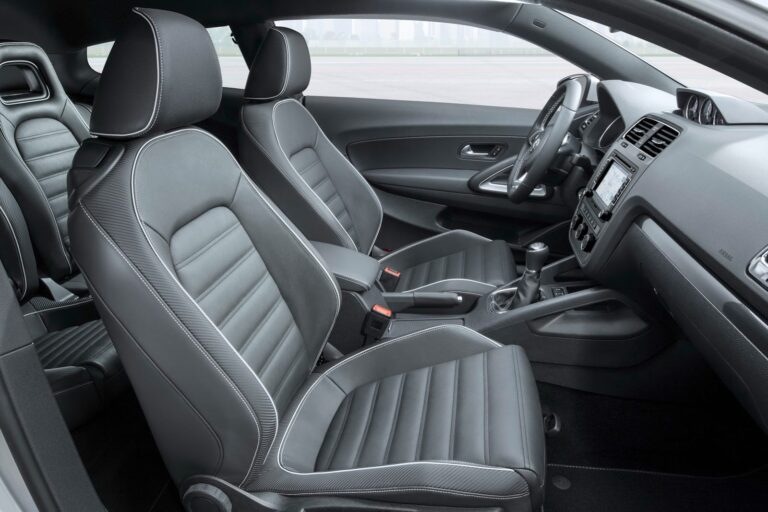 Ulepszone wnętrze. Wnętrze coupé jest standardowo wyposażone w sportowe fotele oraz skórzaną sportową kierownicę (przystosowaną z Golfa GTI) i oferuje również nowe materiały, konfiguracje skórzane i kolory. Nowe funkcje techniczne obejmują system dźwiękowy Dynaudio Excite o mocy 400 watów, monitor martwego pola i asystenta parkowania (ParkAssist). Nowe w standardzie są także dodatkowe wskaźniki (ciśnienie doładowania, stoper, temperatura oleju silnikowego), które oddają hołd oryginalnemu Scirocco.