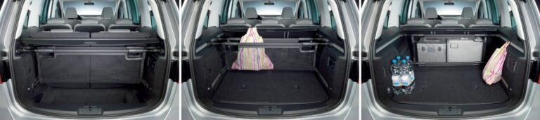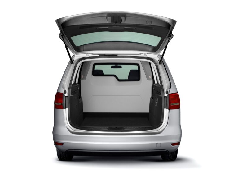 Niezależnie od tego, które z siedzeń z tyłu są złożone, powstaje całkowicie równa powierzchnia do załadunku bagażu. Nawet jeśli złożony zostanie tylko trzeci rząd siedzeń za pomocą łatwego w użyciu mechanizmu jednoręcznego, tworzy to przestrzeń o głębokości 1,3 metra. Ładując do dolnej krawędzi okna, pojemność bagażnika wynosi 711 litrów. Dzięki łatwo zakładanej siatkowej przegrodzie, Volkswagen Sharan może być alternatywnie załadowany aż do sufitu bez żadnych obaw o bezpieczeństwo. Wówczas pojemność bagażnika wzrasta do 1 167 litrów.