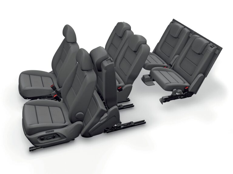Ergonomiczny kształt siedzeń został całkowicie przeprojektowany. Na przykład drugi rząd, tj. tradycyjne tylne siedzenia: składa się z indywidualnych foteli, które mogą być przesuwane o 160 mm do przodu i tyłu i które teraz zapewniają znacznie więcej miejsca na nogi dzięki, między innymi, zwiększonej wysokości siedzeń o 58 mm. Wysokość wewnętrzna pozostała na tym samym poziomie. Ważnym punktem dla rodzin jest to, że dwa zewnętrzne fotele ponownie można zamówić z wbudowanym fotelikiem dziecięcym. Oferują one młodszym pasażerom optymalne bezpieczeństwo i komfort. Fotele są odpowiednie dla dzieci powyżej trzeciego roku życia. Powierzchnia siedzenia jest podnoszona dla dzieci za pomocą prostego mechanizmu, podczas gdy regulowane boki siedzenia utrzymują je stabilnie na miejscu. Boczki oparcia (przymocowane do prowadnic zagłówka) zapewniają również, że pozostają w idealnej pozycji siedzenia.