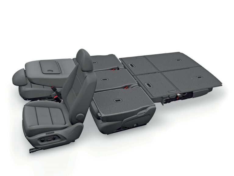 Siedzenia w drugim rzędzie składają się za pomocą również łatwego w użyciu mechanizmu składania. To także tworzy ciągłą przestrzeń bagażową, która – mierząc do oparć przednich siedzeń – ma 2,1 metra długości. Przy maksymalnej długości przestrzeni bagażowej, pojemność przy załadunku do sufitu wynosi 2 297 litrów. Co więcej, korzystając z nowo opracowanego systemu zarządzania bagażem, bagaż można bezpiecznie utrzymać na miejscu. System składa się z siatki i dwóch ruchomych teleskopowych szyn, które są zakotwiczone w bocznych ściankach. Dodatkowo zapewnia dalsze elementy mocujące, które pozwalają na trzymanie przedmiotów takich jak torby w miejscu.