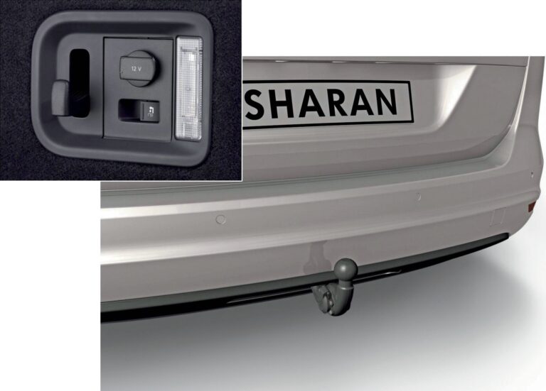 Tył Volkswagena Sharana jest równie jasno zdefiniowany jak przód. Dominującymi elementami wzrokowymi są wyraźny spojler na krawędzi dachu, głęboka klapa bagażnika (wysokość progu: 0,67 metra) oraz bardzo duże tylne światła, które pasują do reflektorów i również tworzą niepowtarzalny wygląd nocą. Klapa bagażnika może być opcjonalnie otwierana i zamykana elektrycznie.