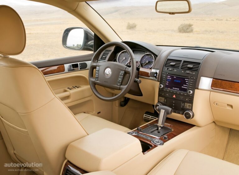 Wewnątrz Touareg oferował eleganckie wykończenie w wyższych wariantach wyposażeniowych, podczas gdy modele bazowe miały materiałowy pokrowiec na siedzenia.