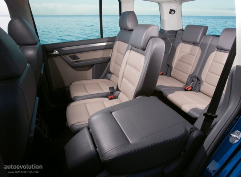 Wnętrze Tourana pomieściło siedem osób, chociaż ostatnie dwa miejsca były odpowiednie tylko dla dzieci z powodu braku miejsca na nogi. Klienci mogli złożyć zarówno środkowy, jak i ostatni rząd siedzeń, aby zwiększyć przestrzeń bagażową, lecz nie były one demontowalne. Volkswagen dodał poduszki powietrzne kurtynowe dla pierwszych dwóch rzędów w ramach bezpieczeństwa, uzupełniając przednie poduszki powietrzne oraz boczne. Punkty mocowania Isofix dla fotelików dziecięcych były standardem w drugim rzędzie. Producent zainstalował system ParkAssist, który kontrolował kierownicę, aby ułatwić manewry parkowania.