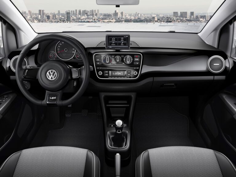 W zasadzie, wnętrze up! ma bardzo czysty i dobrze zorganizowany układ. Dodatkowo, nowy Volkswagen oferuje zabawne style i poziom jakości, który podniesie segment rynkowy. Szczególnie wysokiej jakości jest panel deski rozdzielczej, panel designerski przed kierowcą i pasażerem z przodu. W zależności od wersji wyposażeniowej, panel deski rozdzielczej jest albo w stylu wytłoczonego beżu, albo pomalowany na czarno (move up!), albo w kolorze nadwozia (high up!). Górna część deski rozdzielczej zawsze jest w „antracycie”, a nabywcy move up! i high up! mogą zamówić dolną część deski rozdzielczej w alternatywnym jasnym kolorze „beżowym”. W tym przypadku konsola centralna, wkładki drzwi i boczne panele wykończeń z tyłu są również w „beżowym”.