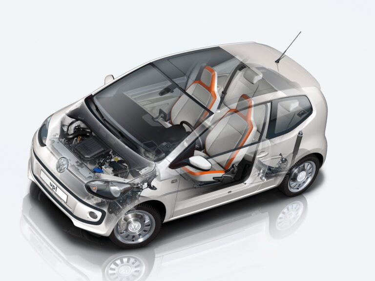 Szczególnie sztywna konstrukcja nadwozia up! spełnia nawet standardy komfortu następnej klasy pojazdów, jeśli chodzi o zachowanie akustyczne i drgania. Zawdzięcza to układowi węzłów i punktów przenoszenia obciążenia. Tło: dostępne przestrzenie montażowe są optymalnie wykorzystywane dzięki trójpowłokowej konstrukcji nadwozia, tak aby komora pasażerska była otoczona solidnymi, obliczeniowo zoptymalizowanymi profilami. Mimo wymagających wymagań dotyczących sztywności nadwozia i właściwości zderzeniowych, wskaźnik wagi pojazdu – miara efektywności wykorzystania wagi – został poprawiony o 34 procent w porównaniu z poprzednikiem up!, Lupo. Up! również ustanawia nowe standardy w swojej klasie z jej statyczną sztywnością skrętną wynoszącą 19,800 Nm/stopień. Wysoka sztywność skrętna ma zdecydowanie pozytywny wpływ na komfort i właściwości prowadzenia. Równolegle, dynamiczna sztywność up! jest również doskonała na poziomie 49 Hz – co korzystnie wpływa na akustykę, drgania i komfort jazdy. W swoim najmniejszym modelu Volkswagen wyraźnie podąża za tymi samymi maksymami bezpieczeństwa, jakości i komfortu, które stosuje w każdym innym segmencie – bez kompromisów.