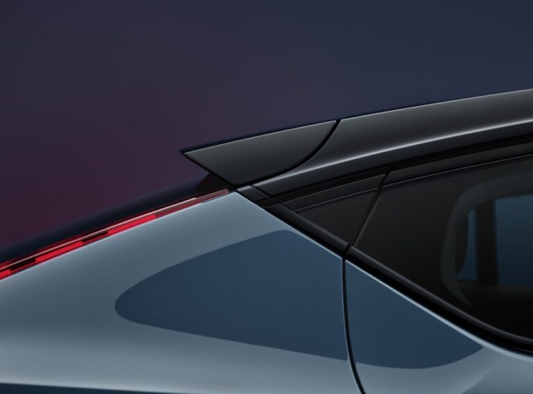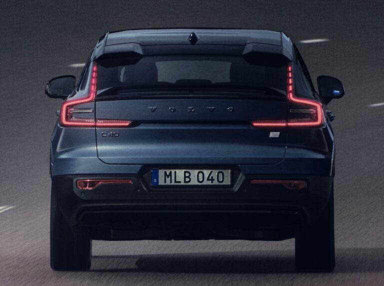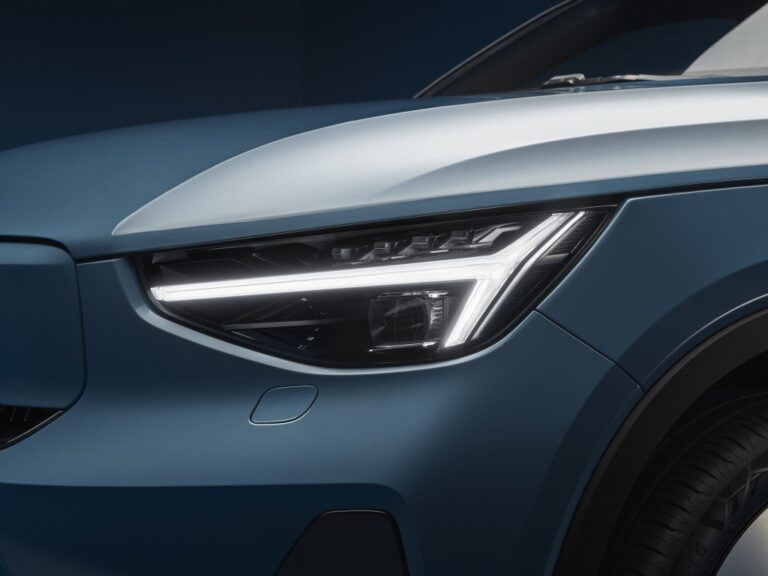 Tył Volvo C40 Recharge charakteryzuje się imponującym designem oraz niższą linią dachu, natomiast nowy przód wprowadza nową twarz elektrycznych modeli Volva i zawiera reflektory z nowoczesną technologią pikselową.