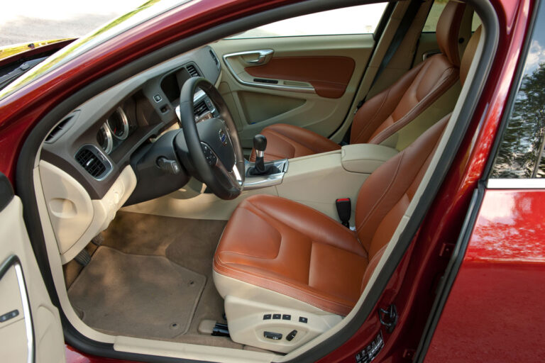 Wnętrze zaprojektowano z wysokiej jakości materiałów. Jako marka premium, Volvo starało się wyposażyć swoje samochody w luksusowe materiały, choć niektóre przełączniki i przyciski pochodziły z części Forda. V60 wyróżniał się unikalnym panelem instrumentów, z centralnym prędkościomierzem otoczonym dwoma ekranami po bokach oraz wskaźnikami poziomu paliwa i temperatury z boku. Fotele przednie posiadały opatentowane przez Volvo zagłówki WHIPS (Whiplash Protection System), a tylna kanapa z możliwością podziału 40/20/40 zwiększała pojemność bagażnika z 430 litrów (15.2 cu-ft) do 1,246 litrów (44 cu-ft) po złożeniu.