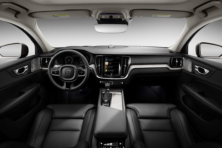 Wnętrze V60 zapewniało miejsce dla pięciu dorosłych osób. Z przodu Volvo zamontowało dwa kubełkowe fotele oddzielone wyglądającą na kwadratową konsolą centralną. W przeciwieństwie do swojego poprzednika, deska rozdzielcza nie miała unoszącego się centralnego panelu. Duży, 12.3-calowy ekran dotykowy w trybie portretowym zajmował centralny panel, po obu stronach którego znajdowały się dwa pionowe wentylatory. System infotainment Sensus był nietypowy jak na segment samochodowy zdominowany przez unoszące się ekrany umieszczone w trybie portretowym powyżej centralnego panelu. Na tylniej kanapie o rozkładanym układzie 40/20/40 było wystarczająco miejsca dla trzech dorosłych. V60 oferowało 529 litrów (18.7 stóp sześciennych) przestrzeni bagażowej, rozszerzalnej do 1,441 litrów (50.9 stóp sześciennych) po złożeniu tylnych siedzeń.