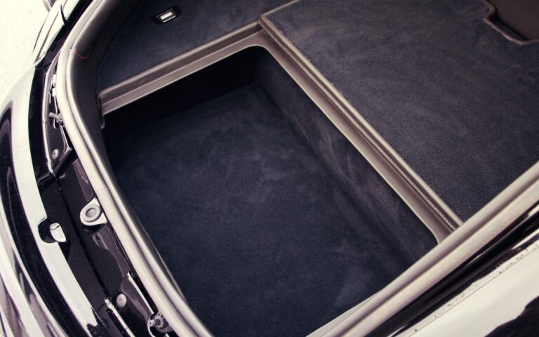 Wnętrze było ręcznie wykonane, a w podłokietniku znajdował się nawet kabel do podłączenia iPhone’a. Przed kierowcą znajdował się tylko mały panel, na którym samochód pokazywał bieg i kilka światełek. Prędkościomierz i inne wskaźniki znalazły swoje miejsce na centralnej konsoli, lekko pochylonej w stronę kierownicy.